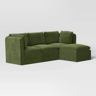 Refresh your living room decor with this 4-Piece Haven French Seam Modular Sectional from Thresholdâ˘. This upholstered modular sectional set brings a clean-lined, modern look to your interiors. It includes one armless sectional, two corner sectionals and a matching ottoman to create a cozy seating space whether you’re entertaining friends, reading a book or watching TV.