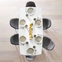 Boasting a beautiful mix of modern elegance and understated style, the Emmond Mid-Century Modern Dining Table from Threshold⢠makes a sleek and stylish foundation in your dining ensemble. With a solid wood frame for lasting use, this dining table features an open base and a rectangular top that’s perfect for hosting everything from dinner dates to family meals. Versatile and convenient, simply mix and match with dining chairs of your choice to bring functional style into your home.