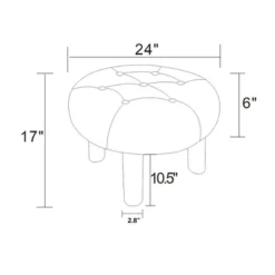 This Kessler Round Tufted Faux Shearling Ottoman with Wood Legs from Threshold⢠designed with Studio McGee adds a touch of luxury to your home. Standing at a height of 17 inches, this round ottoman has a padded seat draped in a cream-colored, faux shearling fabric with a tufted top, and is paired with four wood-finish column legs in brown. The upholstered ottoman is ideal for placing in front of a sofa to prop up your feet after a long day at work, or as additional seating for guests, friends and family.