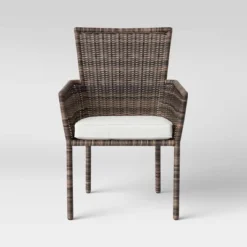 Round out your al fresco seating arrangement in breezy style with this 2-Piece Monroe Patio Dining Chair Set from Thresholdâ˘. These patio chairs features a weather-resistant sturdy steel frame covered with a woven back and armrests for a breezy look thatâs tough enough to stand up to rainy days and sunny days alike. Plus, the foam-filled cushions and raised arms offer comfort whether you’re seated for a family dinner, Sunday brunch or simply conversation and cocktails with guests. Have a seat and relax outside with family and friends on these upholstered dining chairs.