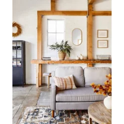 Create a sophisticated seating arrangement that’s sure to catch everyone’s eye with this Prescott Slope Arm Sofa from Thresholdâ˘. Set on natural wood legs, this loveseat has stylish solid-color upholstery with padded seat and back to provide a comfortable place to sit. Perfect to seat up to three people, this wooden-frame sofa makes an elegant addition to your living room seating arrangement, and looks especially great when paired with a coordinating coffee table or ottoman to complete the look.